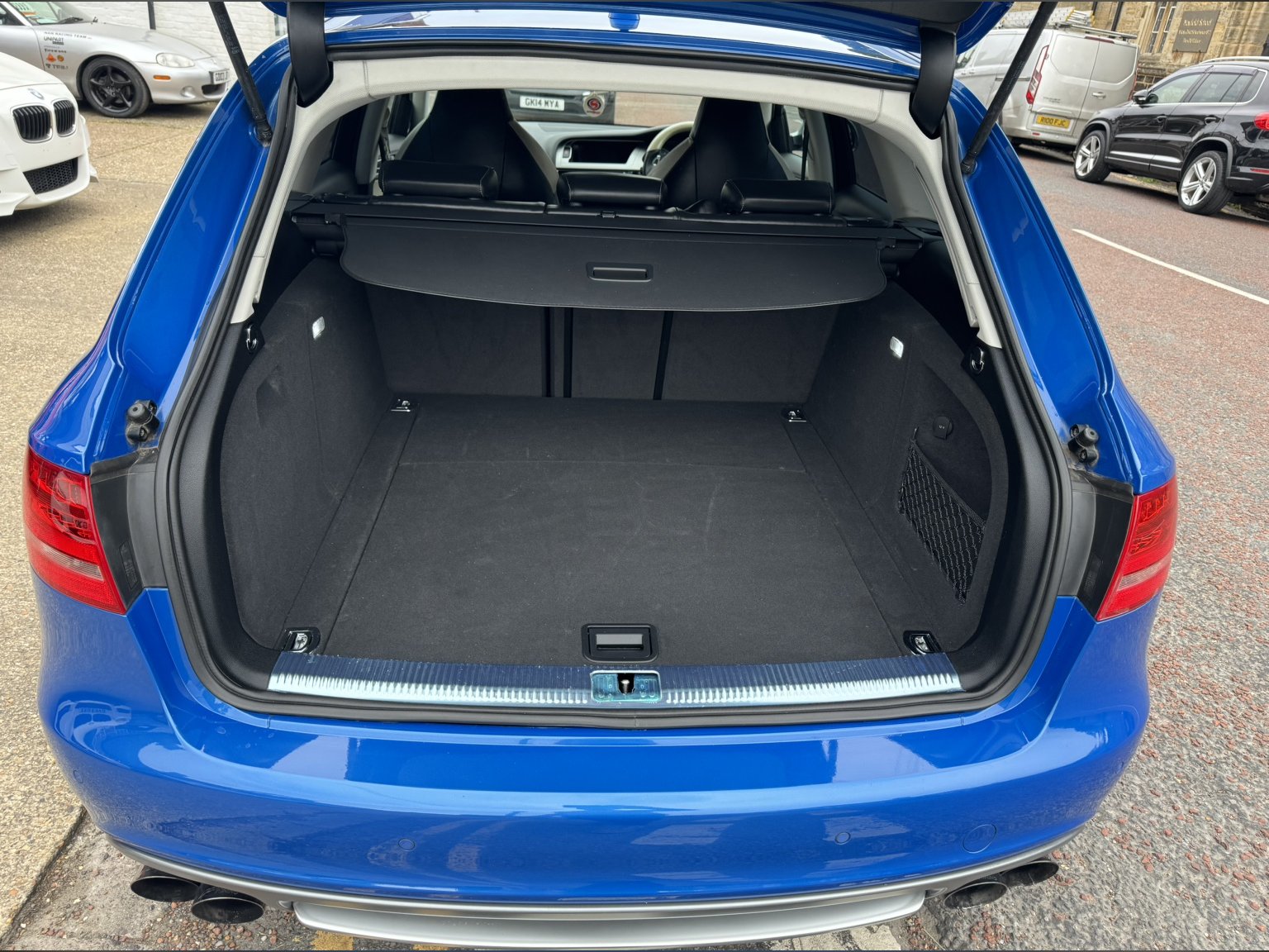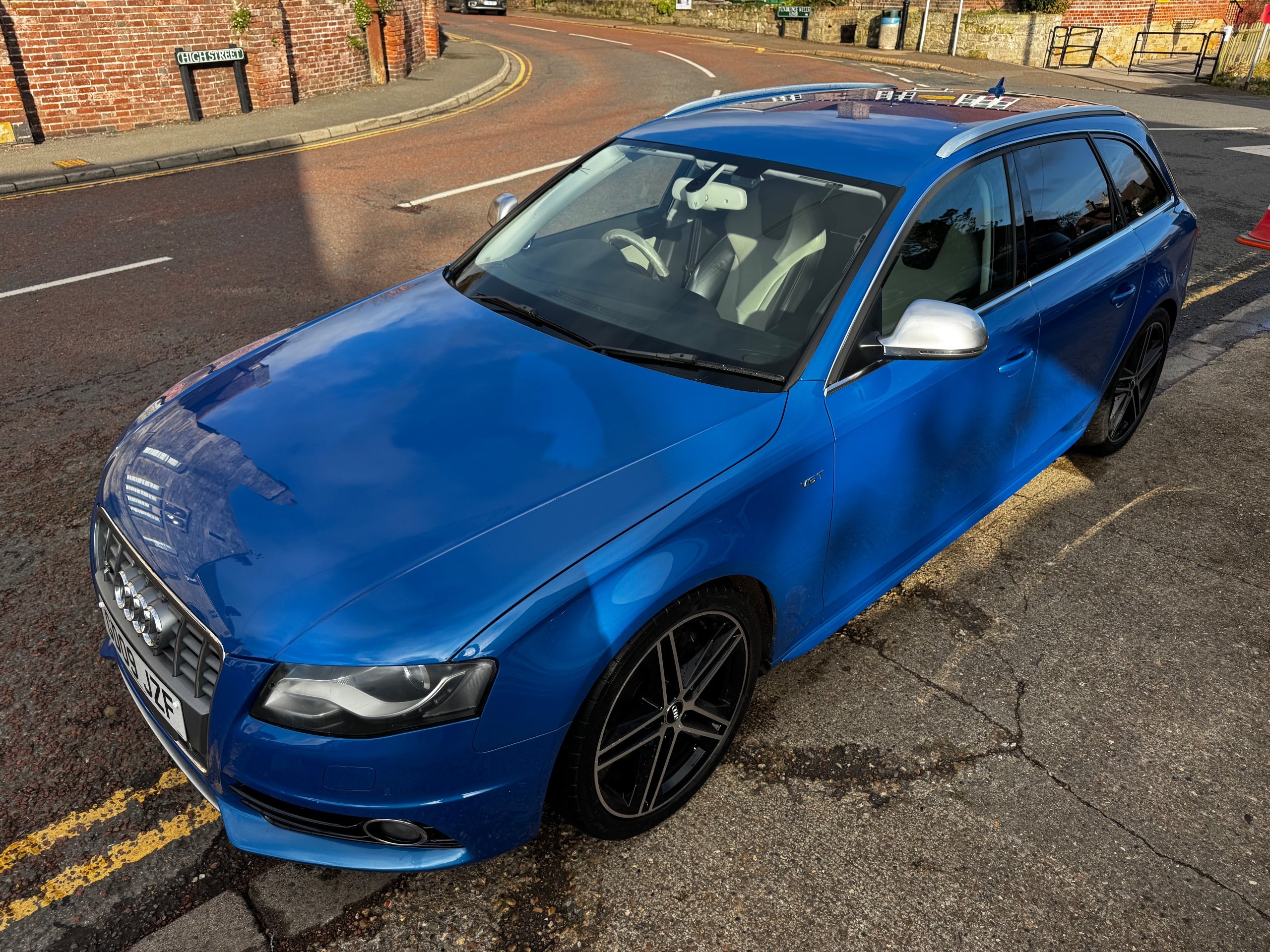 Stunning High spec Audi S4 3.0 TFSi Automatic Quattro Avant, Presented in Sprint Blue with full Black/White Leather sports seats, Bang & Olufsen speakers, Electric front seats with drivers memory, Xenon headlights, Heated seats, Power folding mirrors, Carbon fibre inlays, 19" Alloys