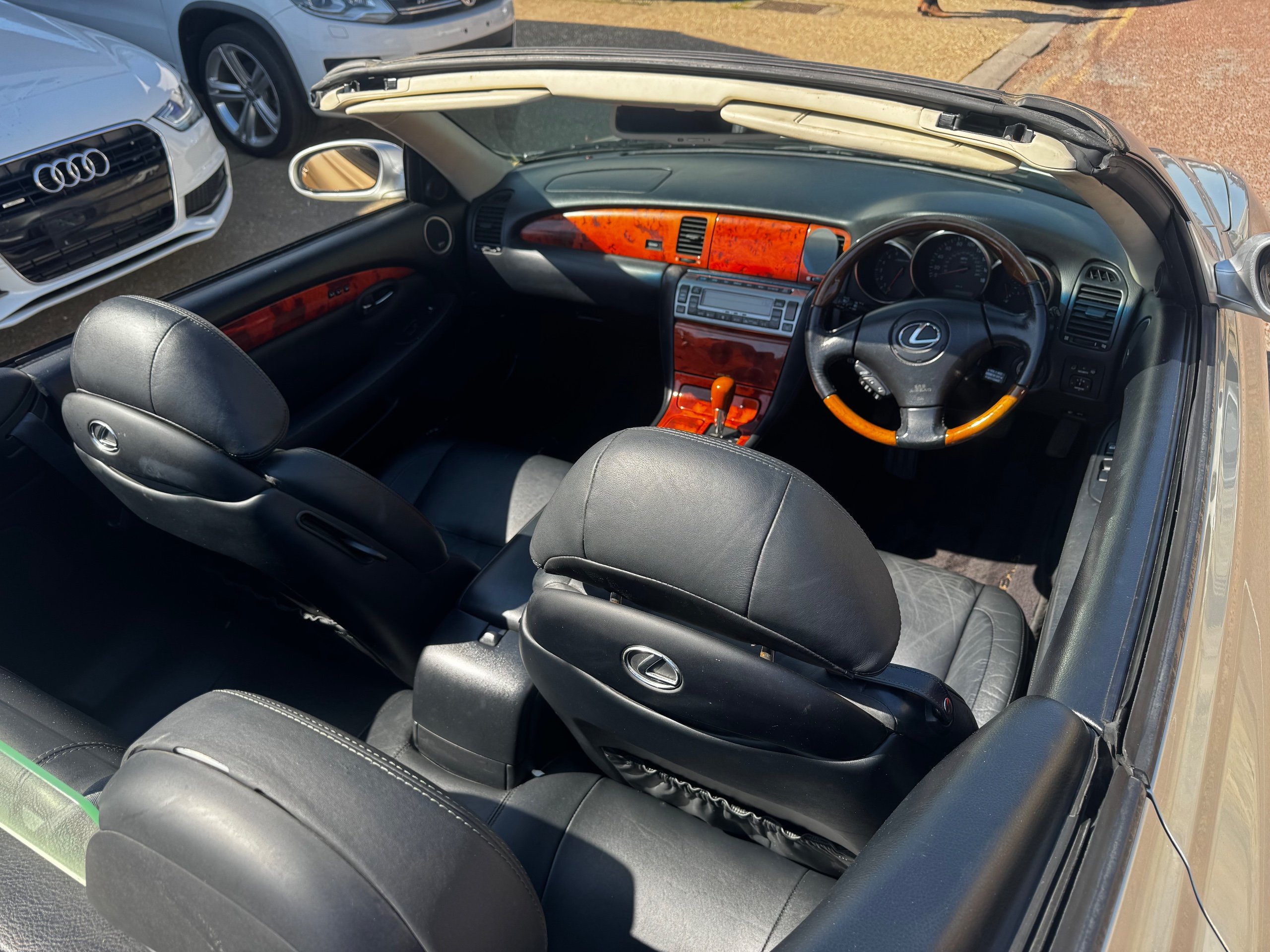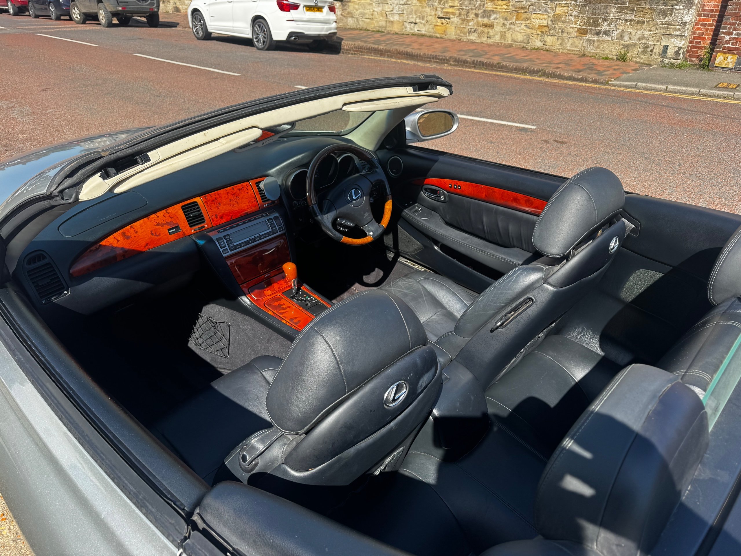 ULEZ compliant - Lovely old cruiser for the summer - Lexus SC430 Automatic 4.3 V8 Convertible, Metallic Silver with Black leather interior, 18 service stamps in the book, Electric seats with drivers memory, Electric folding metal roof, Heated seats, Air conditioning..... Car drives really well but there are areas of the body that require paint or lacquer hence price