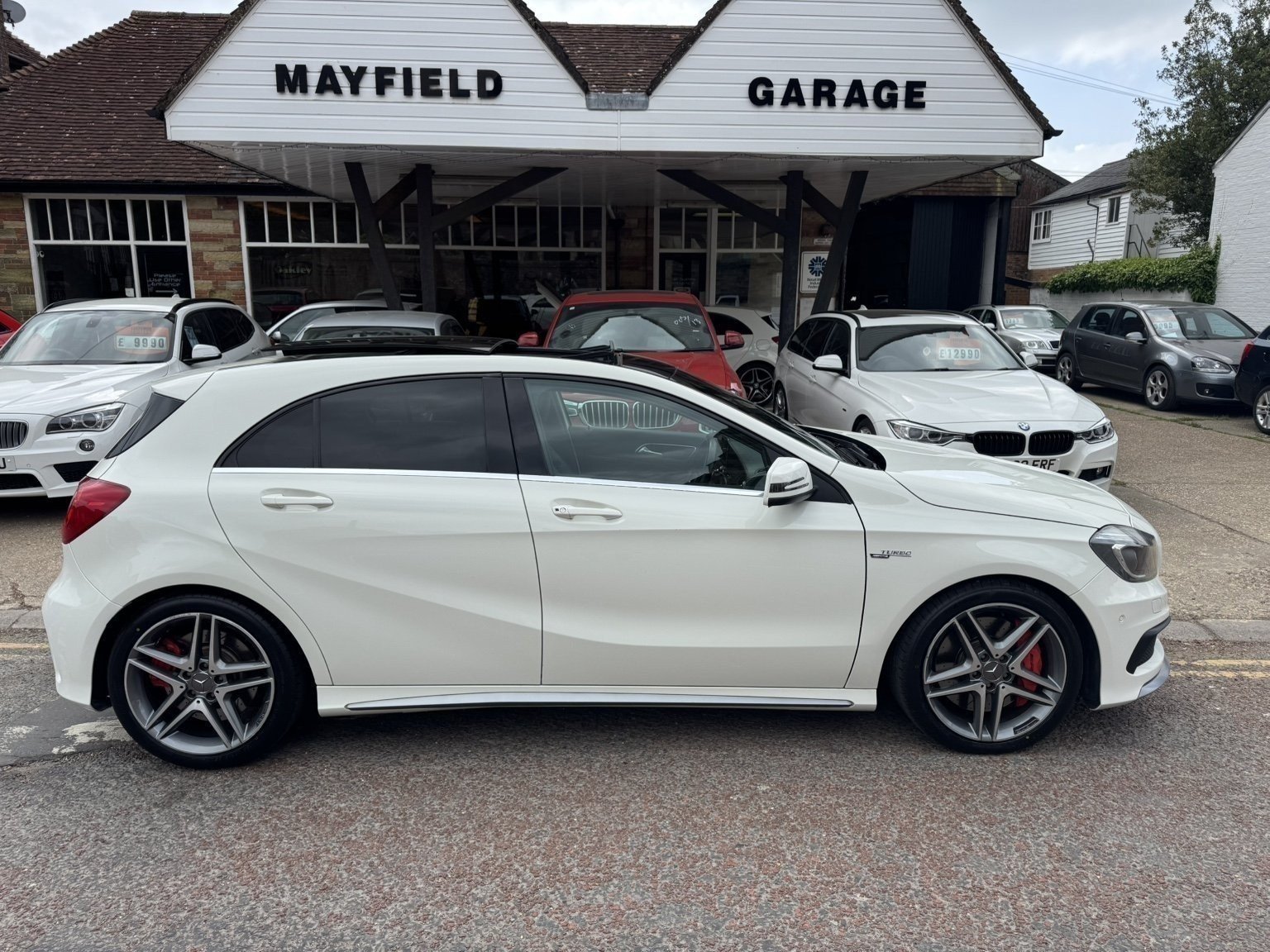 The Amazing Mercedes A45 AMG SpdS DCT 4MATIC, 2014/64 with a genuine 29,000 miles from new, Presented in White with full black leather, Panoramic glass sunroof, Electrically adjustable front seats with memory, Apple / Android Carplay, Xenon headlights, Heated seats, Power folding mirrors, Cruise control, 18" AMG Alloys....
